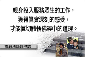 親身投入服務眾生的工作,獲得真實深刻的感受,才能真切體悟佛經中的道理。
