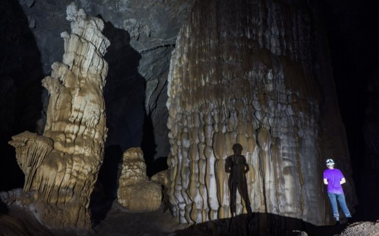 在巨大的洞穴裡,巨型石筍參差錯落,長達70公尺的石筍從空中