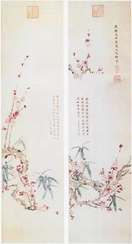 晚年尤喜畫松,“ 筆頗蒼老” 。畫蘭竹,雖只寥寥數筆,然設色布格,必苦心經營,且講究對顏料的特別選用;畫何種彩花,即搗何種花汁為色。