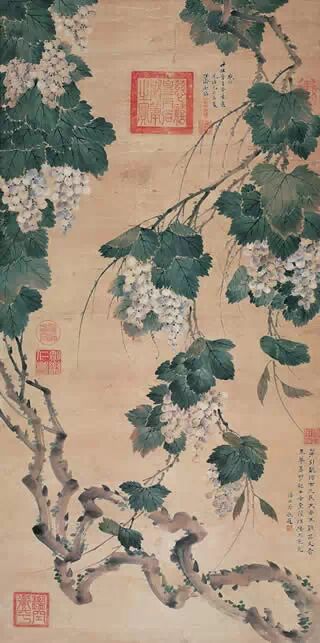 慈禧太后還擅長畫葡萄。因為葡萄粒大又圓,隨手可成;其藤蔓屈曲,如蛇似蚓,信筆而就,易於神似。她所畫的宮體 觀音像,像中朱綠隱隱疊起,衣褶間描以金粉;觀音像之上,還有梵文四字。慈禧所作書畫,中嵌玉璽,德宗(光緒)在側旁加款蓋上御用小印。入值諸臣,凡蒙賜件,“ 率以此為辨別” 是否代筆。但傳世少見。
