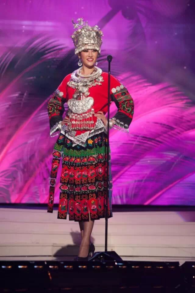 準確地說是苗族妹子吧,很56個民族56朵花兒,辛苦這個中國小姐了!