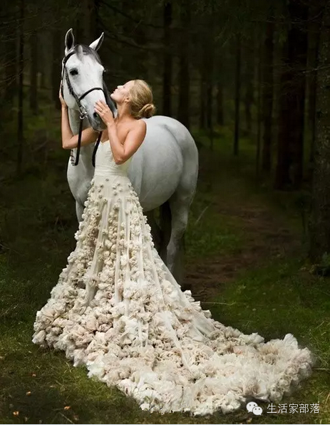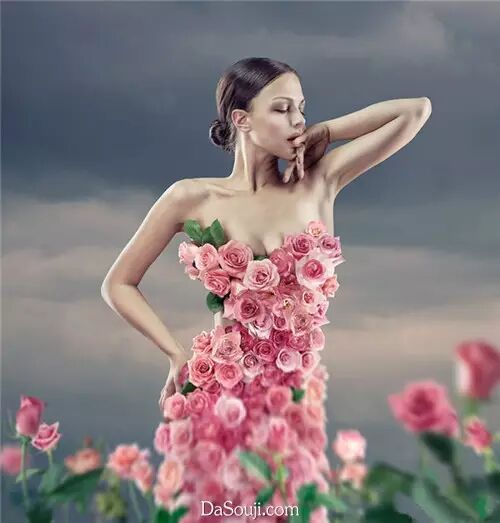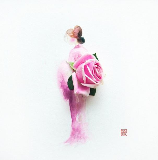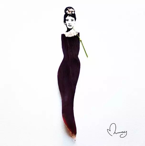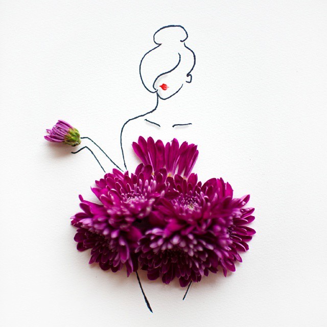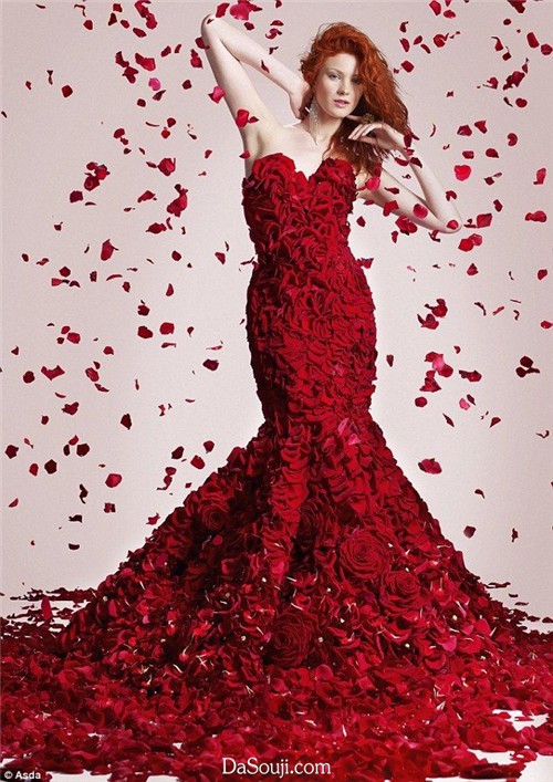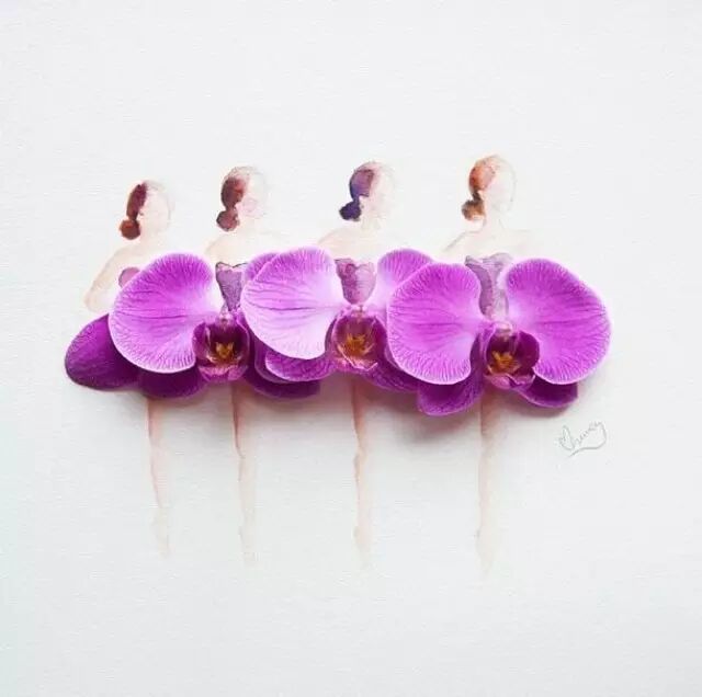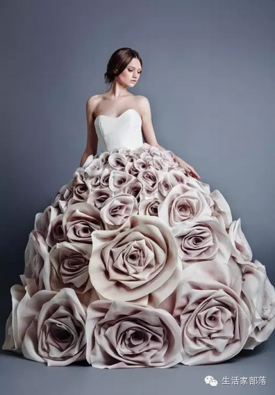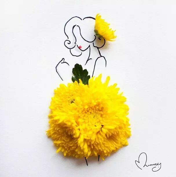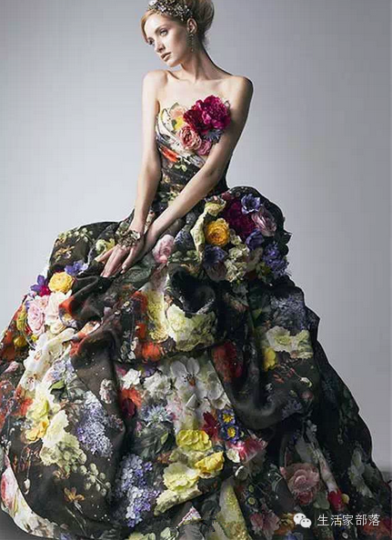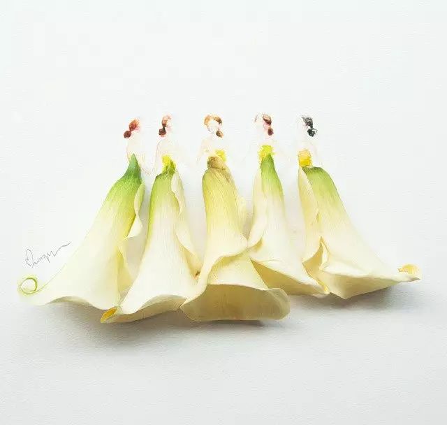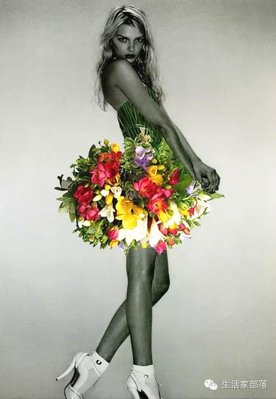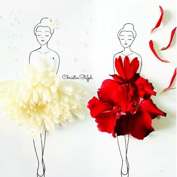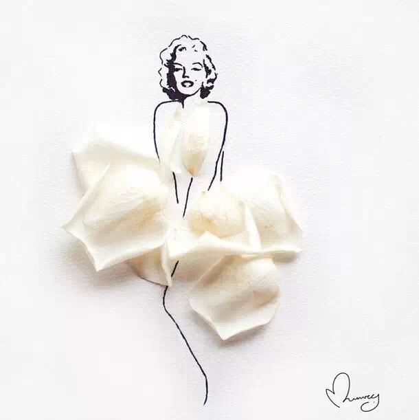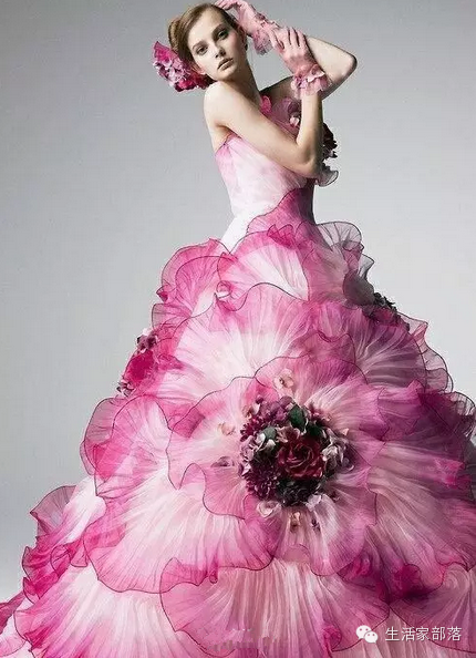以上裙裝的設計師不詳,下面,是馬來西亞藝術家Limzy的作品,她將水彩和花瓣相結合,用一系列花朵做裙子,同樣以美聞名世界。