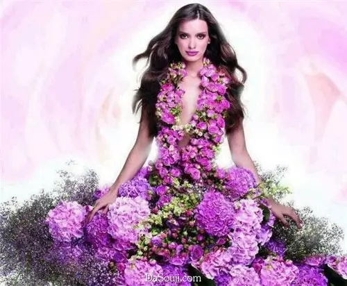 以上裙裝的設計師不詳,下面,是馬來西亞藝術家Limzy的作品,她將水彩和花瓣相結合,用一系列花朵做裙子,同樣以美聞名世界。