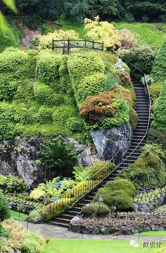 布查德夫婦有技巧地將罕見的奇花異木糅合起來,創造出現在享譽全球的低窪花園(Sunken Graden),所採用的花卉植物大多數是他倆遍遊世界各地時親手收集的。