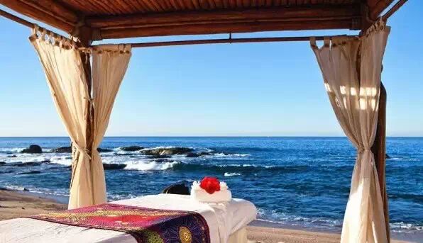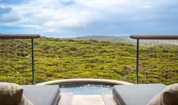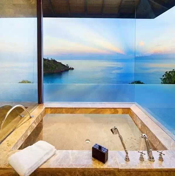 在浴缸裡可以看到大海,營造出一種浪漫的理想氛圍。最重要的是,這裡還有一個私人的超大熱水浴缸。