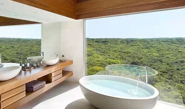 躺在浴室裡,透過大面積的玻璃窗可以看到室外碩大無比的美景。