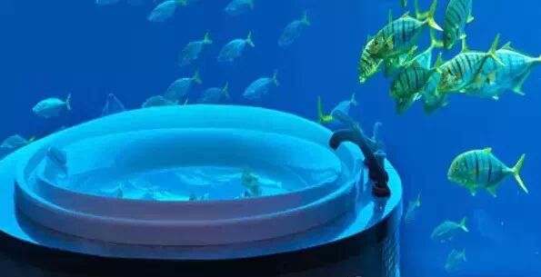 跳進寬大的浴缸裡泡個熱水澡,色彩斑斕的魚兒就在身邊游來游去,真是一生難忘的場景~