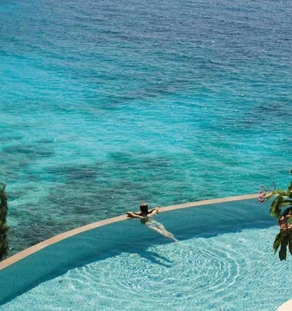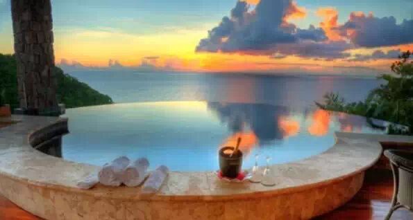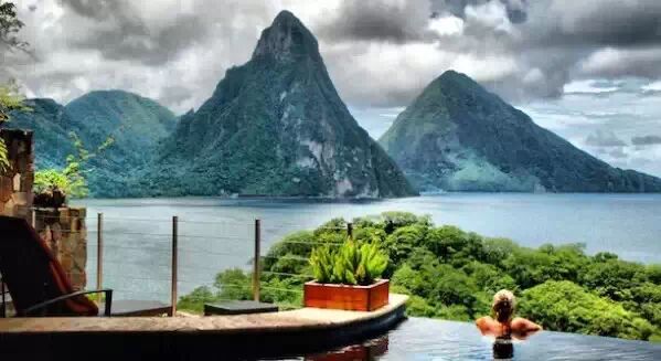 Jade Mountain 酒店把天然美景與酒店的私密空間融為一體,每間套房都有私人按摩浴缸或無邊泳池,池水與湛藍海水連成一片。靠在泳池邊,飽覽聖盧西亞島上 Piton 雙子峰和加勒比海,景色唯有浪漫和魔幻可以形容。