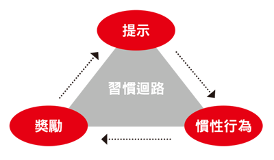 曾經有人做過估計,人們每天的行為有超過 4 成是習慣使然,而非審慎決定的結果。有了這點認識,也就很有理由去了解習慣是如何形成和運作。這一切都歸因於「習慣迴路」的運作──你看到一個提示,因此遵循一個慣性行為,以便得到你渴望的獎勵。 要建立新習慣或改變舊習慣,你只要保留相同的提示與獎勵,然後想辦法汰換舊的慣性行為,改成更新更好的行為。