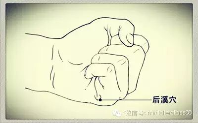 這個時候,你可以掐按你的小指指根下方內側和外側的凹陷處,可以以指甲用力掐按,但是注意不要掐破了。左邊脖子疼,就掐按右側的小指指根,右邊疼掐按左側的,掐按的同時慢慢的活動頸部,有利於快速緩解落枕。