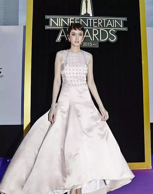 寶兒適合濃妝,穿著迪奧禮服是不是有點像蔡依林?