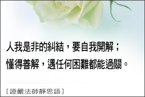 人我是非的糾結,要自我開解;懂得善解,遇任何困難都能過關。