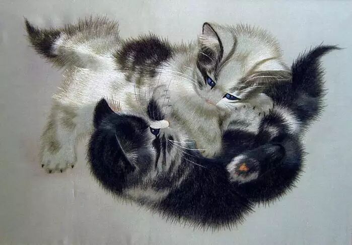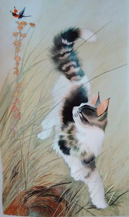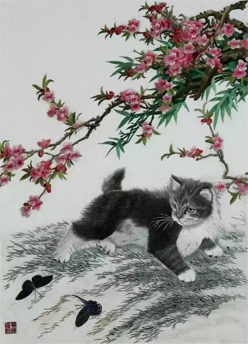 《貓》,雙面繡,藝人們運用20多種顏色的絲線才把貓睛繡得炯炯有神,栩栩如生。