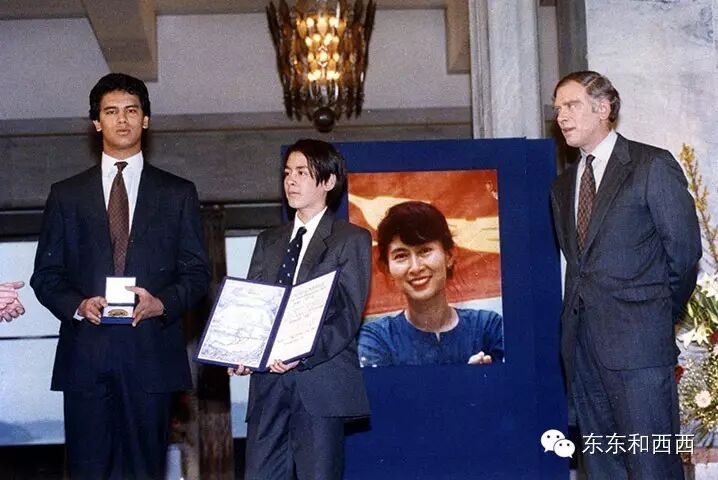 ▲1991年獲得諾貝爾和平獎時,是兩個兒子代領的。