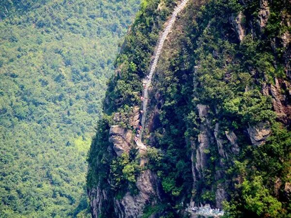 這條天梯之所以被稱為“天梯”,可不是虛有其名,500米路程,80°坡度,“懸掛”在海拔1417米的金子山懸崖峭壁之上,直通雲頂,光看著都膽戰心驚!經過8年的建設與完善,天梯全段完全建成,並且加裝了護欄,目前,已正式對遊客開放。不過,那麼陡,你敢來挑戰嗎?
