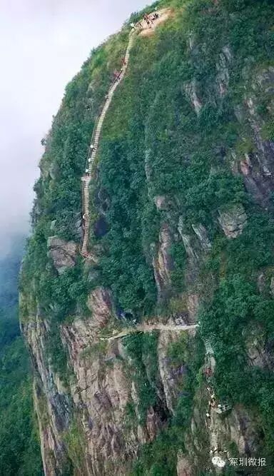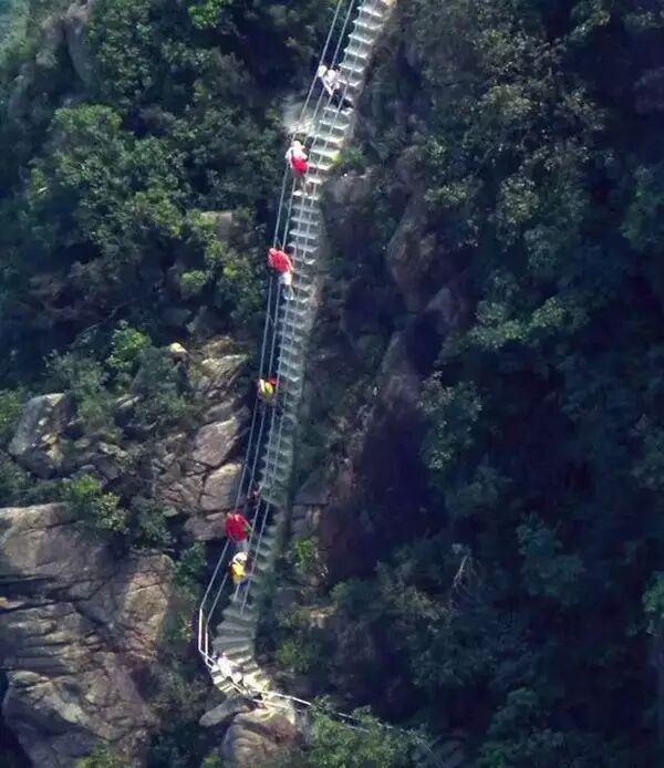 素有“南粵小華山”與“廣東第一險峰”之稱的金子山天梯,前不久已對外開放,500米路程,80°坡度的“天梯”,“懸掛”在海拔1417米的金子山懸崖峭壁之上,直通雲頂,光看著都膽戰心驚。