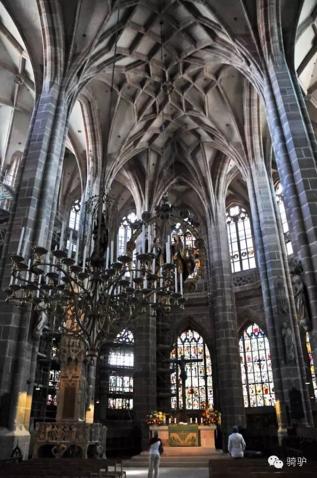 在集市保卫下的教堂似乎有种更接近“凡间”的亲近之感,光是看外表,这座宏伟的建筑就引人注目,教堂内部宽敞明亮。每天十二点,洪亮悠长的钟声敲响,使教堂显得庄严肃穆。