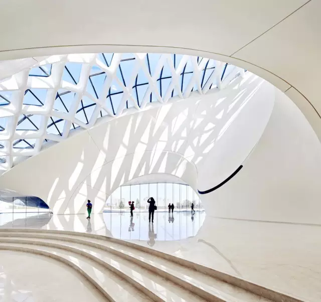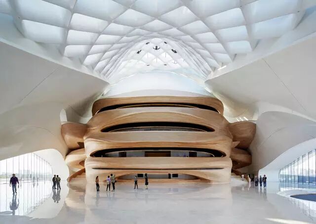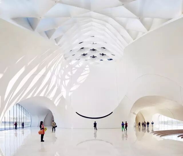 美國《建築實錄》稱這座建築擁有“迷人的曲線”,荷蘭MARK稱“建築成為自然環境的延續,成功地成為大地景觀的一部分。” 宛如飛龍在天的天窗跨越整個大堂空間,天窗上的金字塔般的結晶幕牆單元體就像是透明龍鱗,陽光從這裡傾瀉而入,灑滿整個氣勢磅礴的大堂。豐富的光影與精練的材料還有戲劇性的空間共同作用,直擊人心,讓人終生難忘。