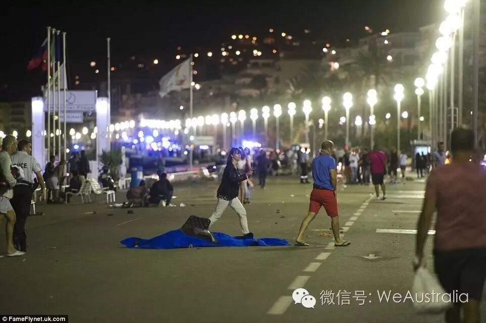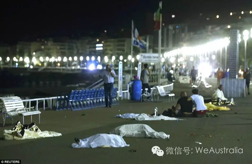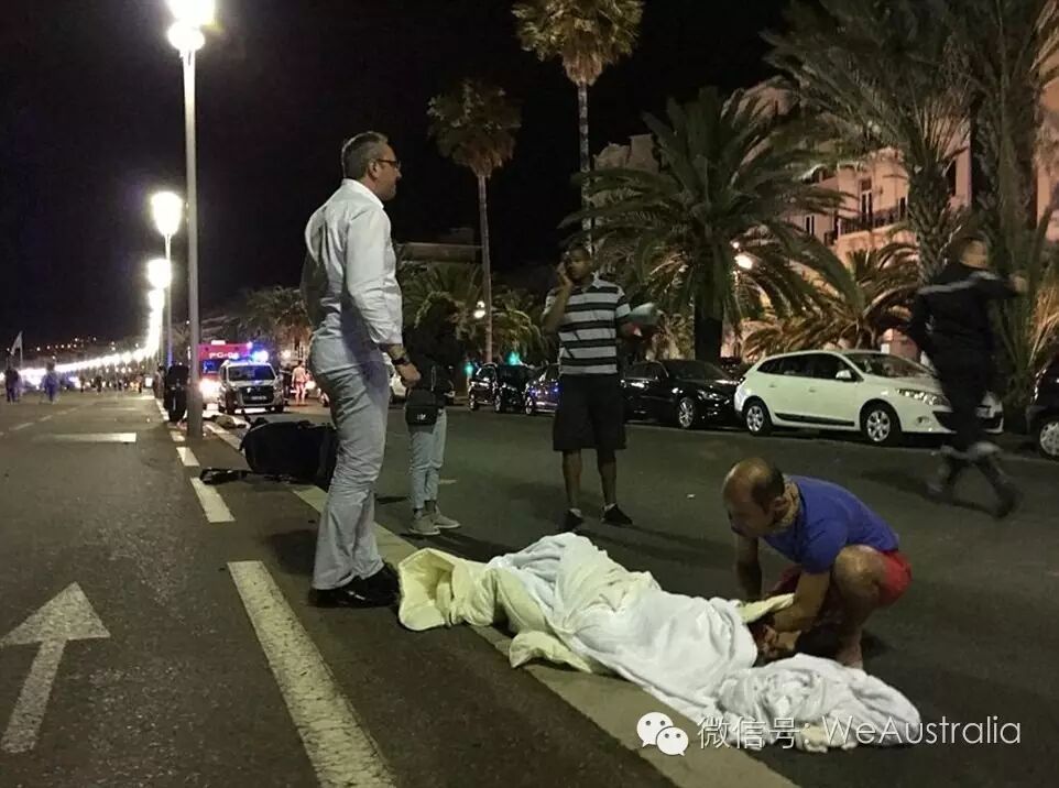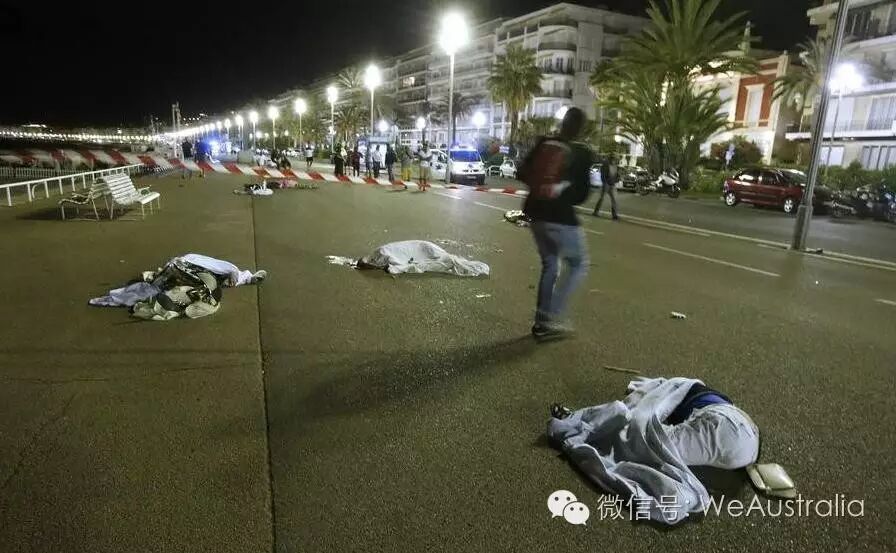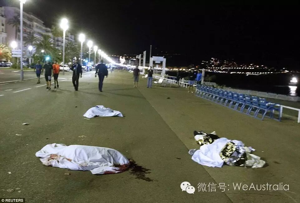 在尼斯著名的盎格魯街(Promenade des Anglais),一輛大卡車以40mph的速度衝入人群,然後殘忍地在人群中開了至少1600多米(至少1英里),至少75人死亡、150人受傷!現場頓時橫屍遍布!