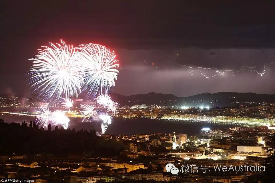當晚,法國第五大城市、位於南部的港口城市尼斯(Nice),大批群眾聚集起來,沉浸在國慶日煙花匯演的壯觀中......