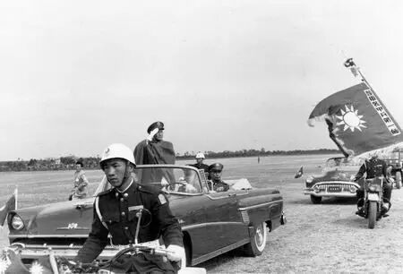 1960年美國總統艾森豪來台訪問,蔣介石一身筆挺軍服,前往松山機場迎接。艾森豪是歐戰英雄,蔣則結合中國各黨各派進行八年抗戰,兩人都是二戰代表人物。在美蘇冷戰時期,台灣成為美國在遠東防堵共產勢力的一座堡壘。1960年台灣同時發生「雷震事件」,推遲台灣民主化的進程。