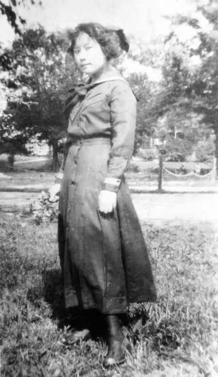 宋美齡站在二姊宋慶齡身後合影。宋慶齡二十二歲時,在父親反對下,嫁給大她二十七歲的孫中山。宋慶齡崇拜孫中山的英雄氣質與愛國情懷,毅然追隨孫中山。1925年孫中山過世後,她依然堅持丈夫"聯俄、容共、扶助農工”三大主張,因此對蔣介石屠殺共產黨員極表不滿,公開譴責蔣介石。