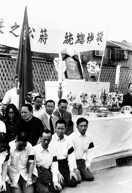 1975年4月5日,蔣介石病逝,享年八十八歲。當時台灣人民普遍表達哀慟之情,元首駕崩,下跪就成自然之舉。無論是不是“造神”運動下荒謬行徑,當時許多官民向蔣介石行跪拜之、禮,確實是出自真情。以前台灣人書寫“蔣公”二字,必須在“蔣”字之前空一格,以表敬意。