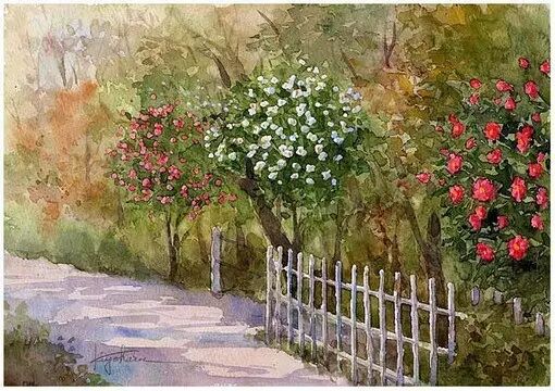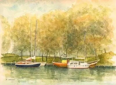 1985年及以後6年被荷蘭的水彩畫展吸引,此後便自己開始學習並著重於以歐洲的繪製透明水彩。
