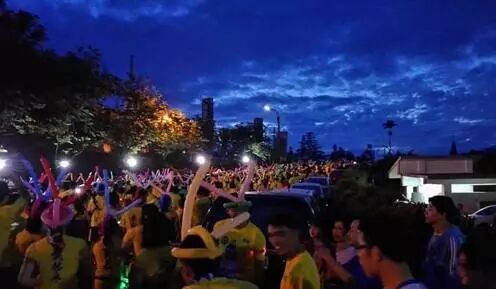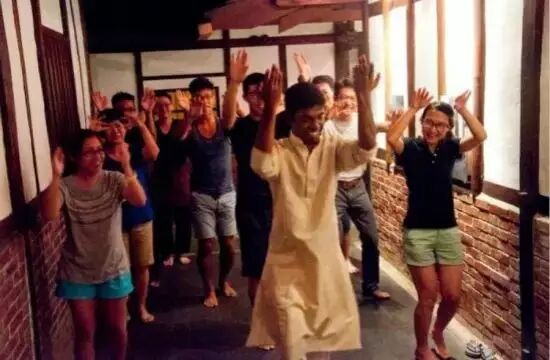 大家在三合院裡唱歌,