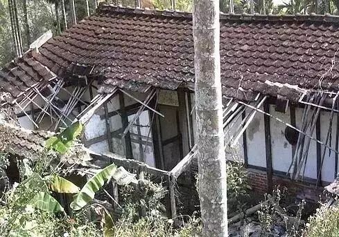 竹林掩映間的一座破落老屋,