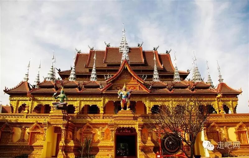 這個金碧輝煌的寺廟是西雙版納佛寺中等級最高的佛寺,琉璃幻彩的尖頂和周圍茂盛的森林植被相映成輝。