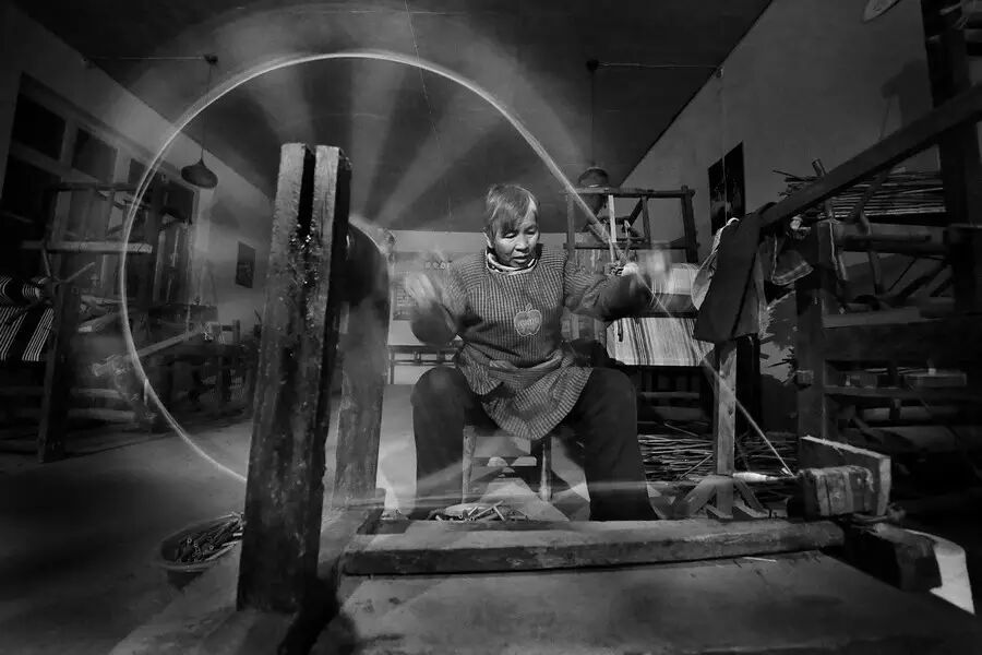 这次进山采风偶遇了传统的织布工艺,使他激动万分,一下子感觉我回到了那个童年时代。