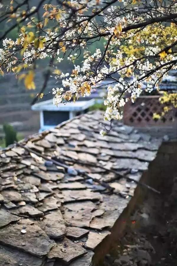 尤其是梨花,娇艳欲滴,竞相开放,与古老的石板房遥相呼应,搭配有佳,焉然象一幅幅图画。