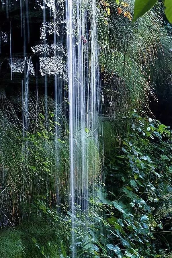 從兩山間流出的清澈泉水,彎彎曲曲,曲曲彎彎,宛如一條白絲帶在蒼山翠柏間流過。讓人留戀往返陶醉其中。