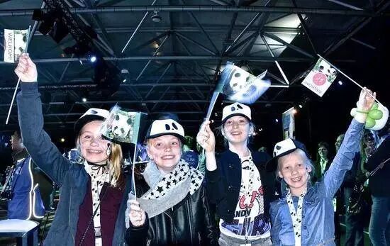 揮舞著熊貓彩旗,勢在給熊貓寶寶們