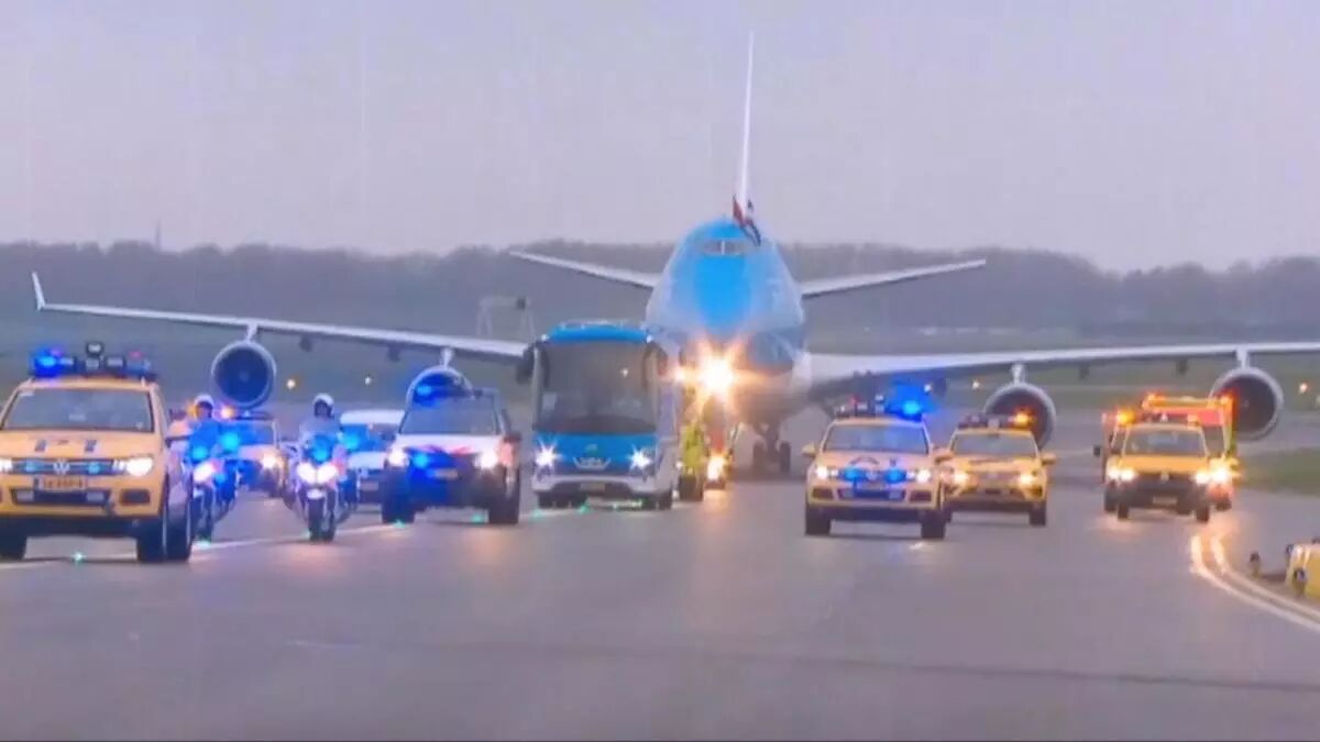 數十輛警車為專機開道