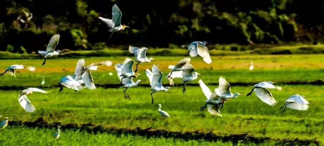 光是候鸟就有大雁、天鹅、苍鹭、白鹭、钳嘴鹳