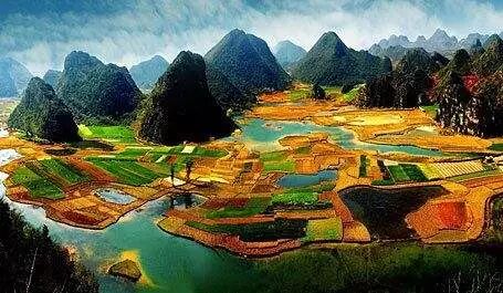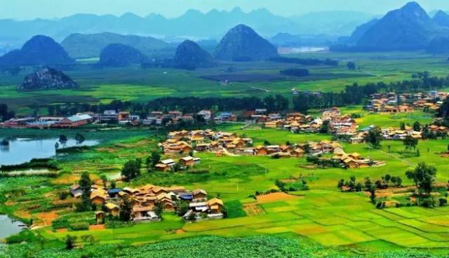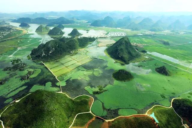 200多座喀斯特小山峰、村舍、农田和草场组成