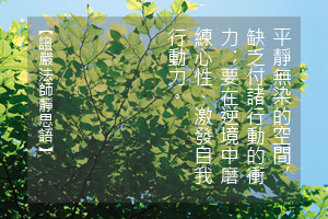 平靜無染的空間,缺乏付諸行動的衝力;要在逆境中磨練心性、激發自我行動力。