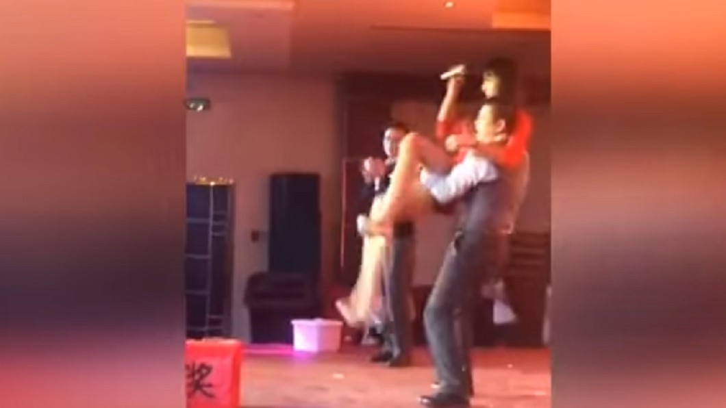 尾牙舞台變摔角場!男主管重摔「正妹」還鼓掌歡笑