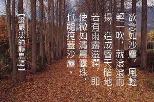 如沙塵,風輕輕一吹,就滾滾而揚,造成昏天暗地;若有雨露滋潤,即使微如清晨露珠,也能掩蓋沙塵。