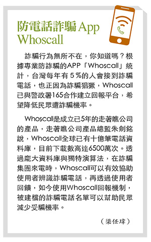 詐騙行為無所不在,你知道嗎?根據專業防詐騙的APP「Whoscall」統計,台灣每年有5%的人會接到詐騙電話,也正因為詐騙猖獗,Whoscall已與警政署165合作建立回報平台,希望降低民眾遭詐騙機率。