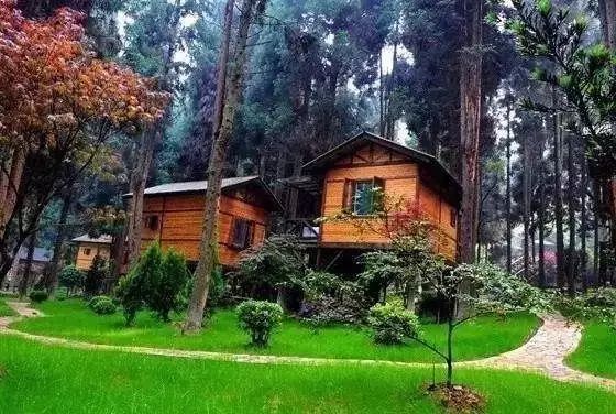 森林里还有别具一格的吊脚小木屋,住在这里仿佛住进了森林童话…