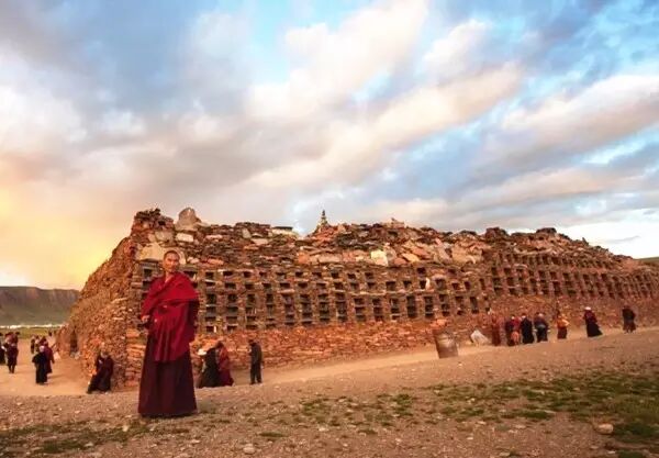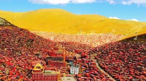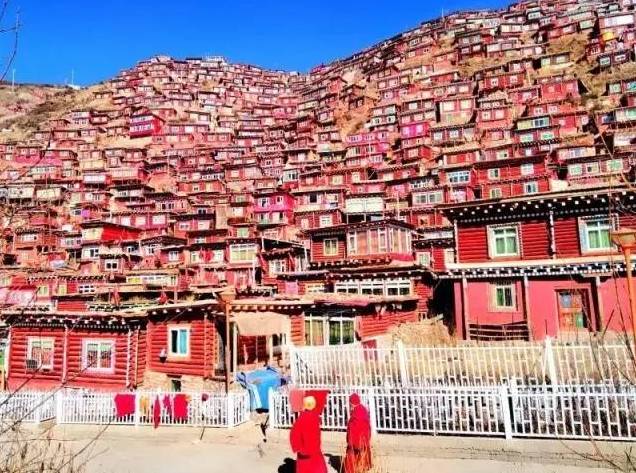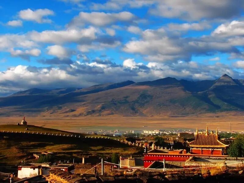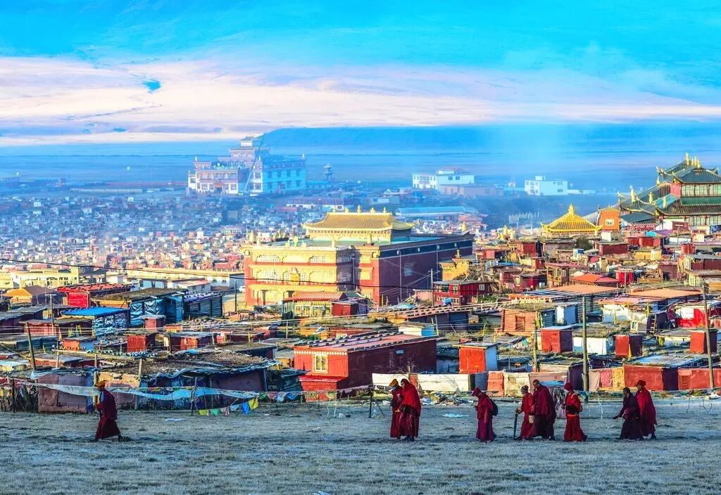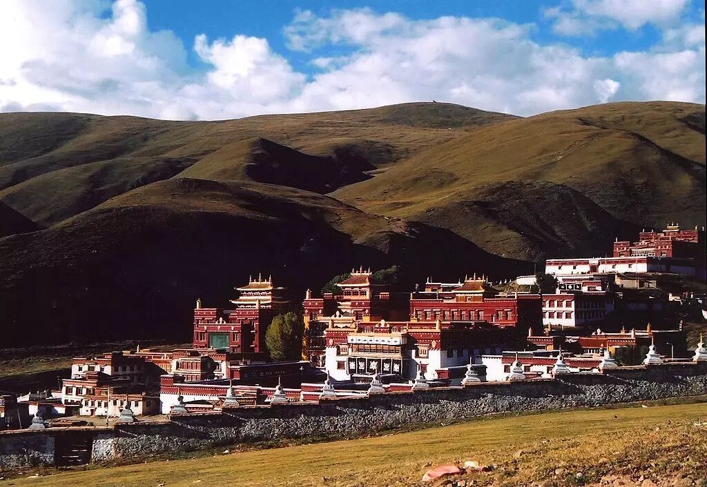 這座廟宇與拉薩三大寺齊名,是一座佛學院,有學生800人。這裡有長長的白塔牆,紅白黃相間的廟宇,以及淳樸安靜的生活。