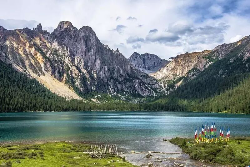 从雅江县城沿着雅砻江而上,在约莫26公里外的地方,有一处美丽的庆达沟。崇山峻岭之中,洛冬湖边犹如一位纯净的少女,静卧在沟中。盈盈碧水倒映着群山与林海,格外美丽。