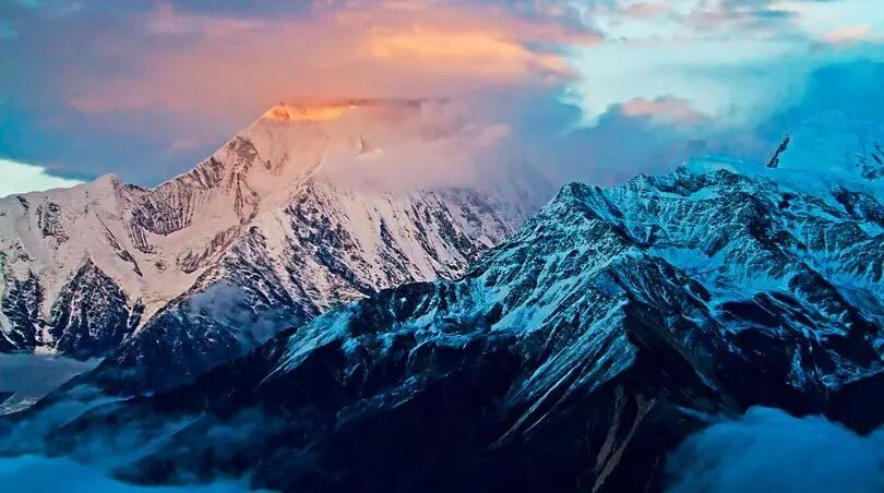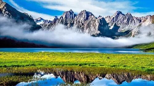 無論季節變換,嘎金雪山都猶如擎天玉柱,巍峨壯觀又清純脫俗。那常年橫繞山腰的雲霧,好似一條潔白的哈達。