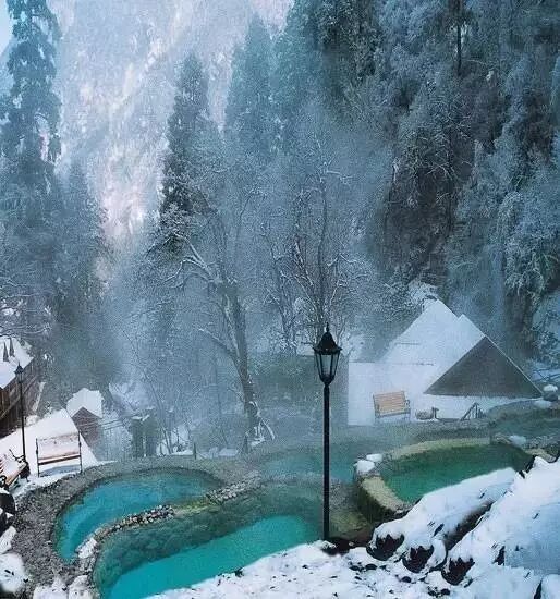 海螺溝有四大景:冰川傾瀉、日照金山、雪域溫泉和原始森林。很多人選擇在冬日前往這裡,這時無論是看舉世無雙的冰川,還是在冰川腳下泡溫泉,都很愜意。