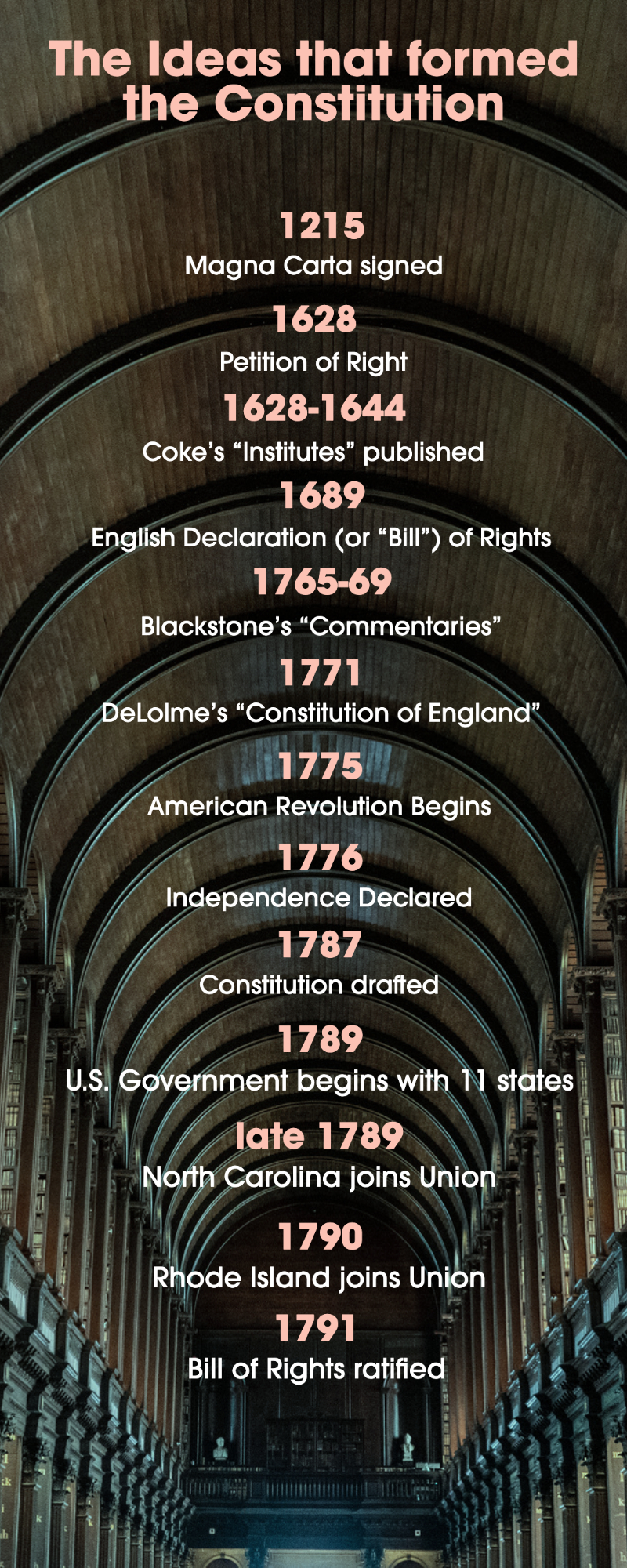 了解憲法需要的不僅僅是討論言論自由,或翻看標題為「法案如何成為法律」的圖表等資料。憲法得益於幾千年來的思想,本系列文章中介紹的大多數思想家都生活在古典古代。後來者,如約翰‧洛克和孟德斯鳩男爵,他們也接受了來自於古典時代的智慧,學習了後來的英國和歐洲歷史,借鑑了英美法律制度。