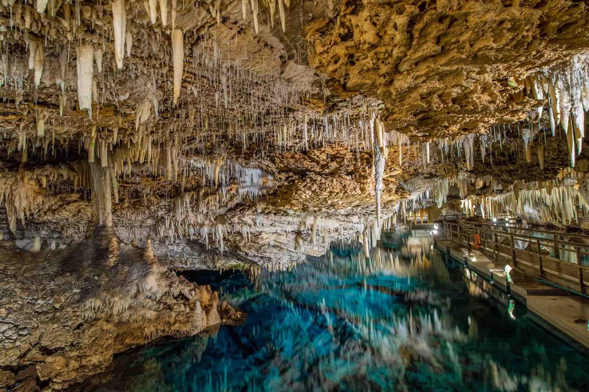 水晶洞群(The Crystal Caves),正如他們的名字一樣,在1907年成為一個旅遊景點,幾十年來吸引了無數遊客,在2010年代每年多達85,000人。其中值得一提的是,傳奇作家馬克‧吐溫在第二次前往百慕大期間,在前往聖喬治的途中探索了這個石窟。他是這樣描述這個大自然的瑰寶的: