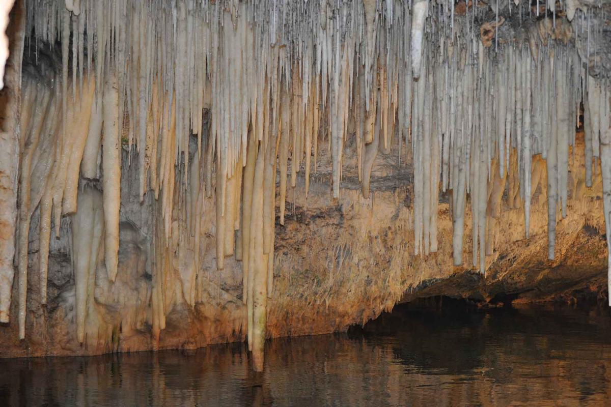 鐘乳石在水面上的鏡面反射令人驚歎。水下的石層似乎只有幾英寸深,但實際上在50英尺以下,這證明了湖的驚人清澈度。